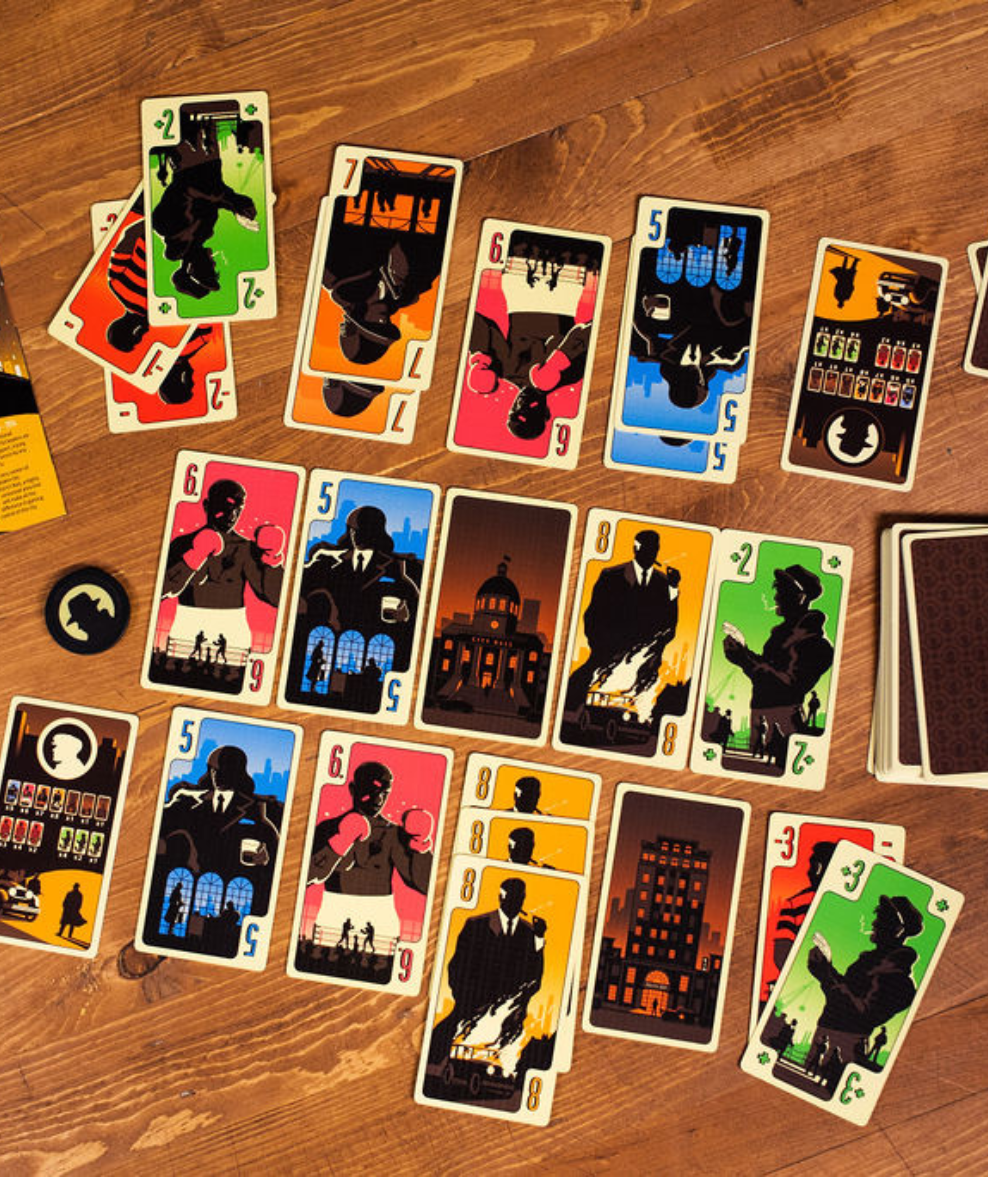 Fine micro-card game with elements of Hanamikoji and Tussie Mussie but with a 1950's Hoboken, New Jersey crime theme. Lovely! To my mind, this game is better than either of the aforementioned games but just as fast. It's a card game with elements of hand drafting and set collection. I think that this is now our fastest game, much quicker playing than most micro-games, about 10 minutes to play. Every great small game has one or two really clever scoring bits and this is no exception. There's an opportunity for instant win, and three different scoring opportunities to weigh with every play.Only negative: The box is a bit bigger than necessary.