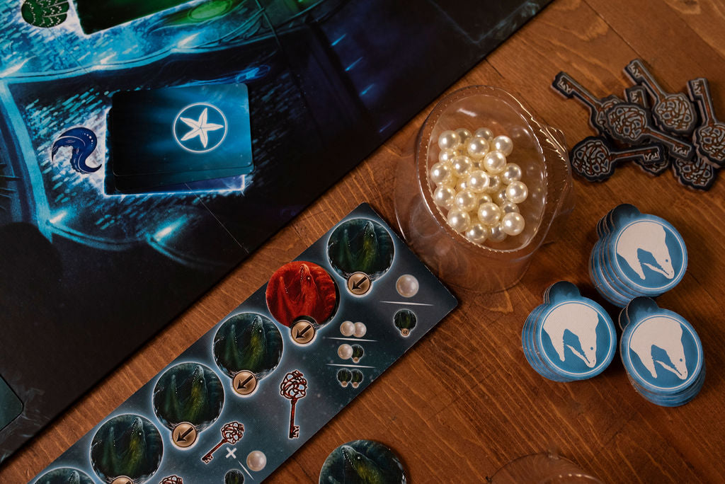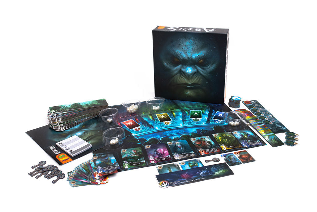 Abyss is a game of development, combination and collection in which players try to take control of strategic locations in an underwater city. To achieve this, players must develop on three levels: first they must win allies in an auction. Second, they must recruit Lords by turning in their required sets of these allies. And third, they must use these Lords to gain control of locations, sacrificing their Lords' powers in the process.