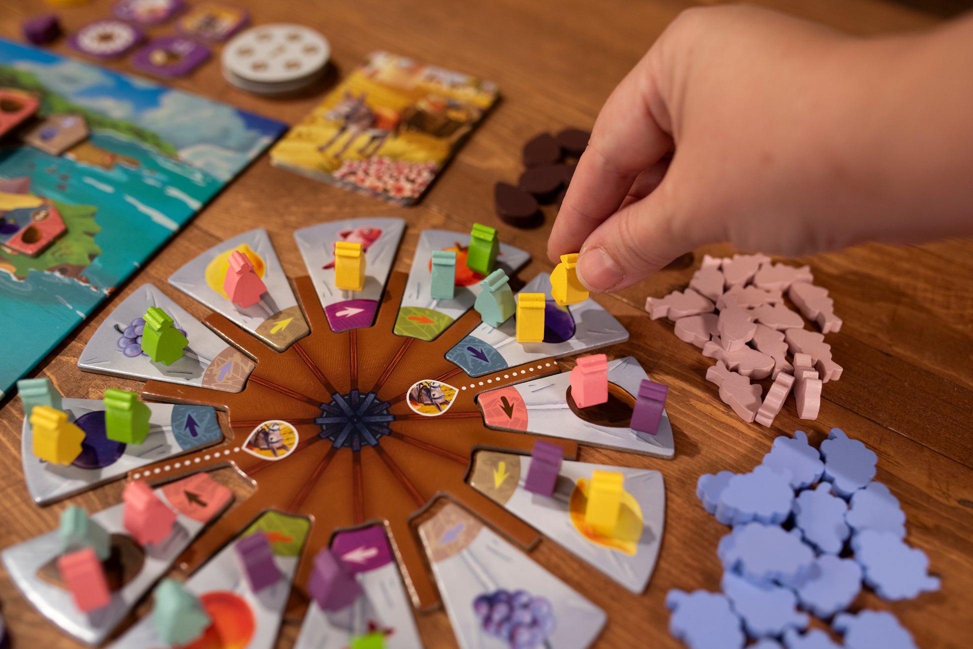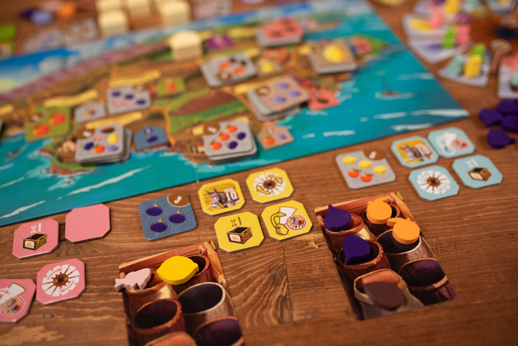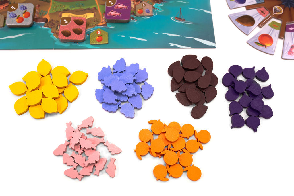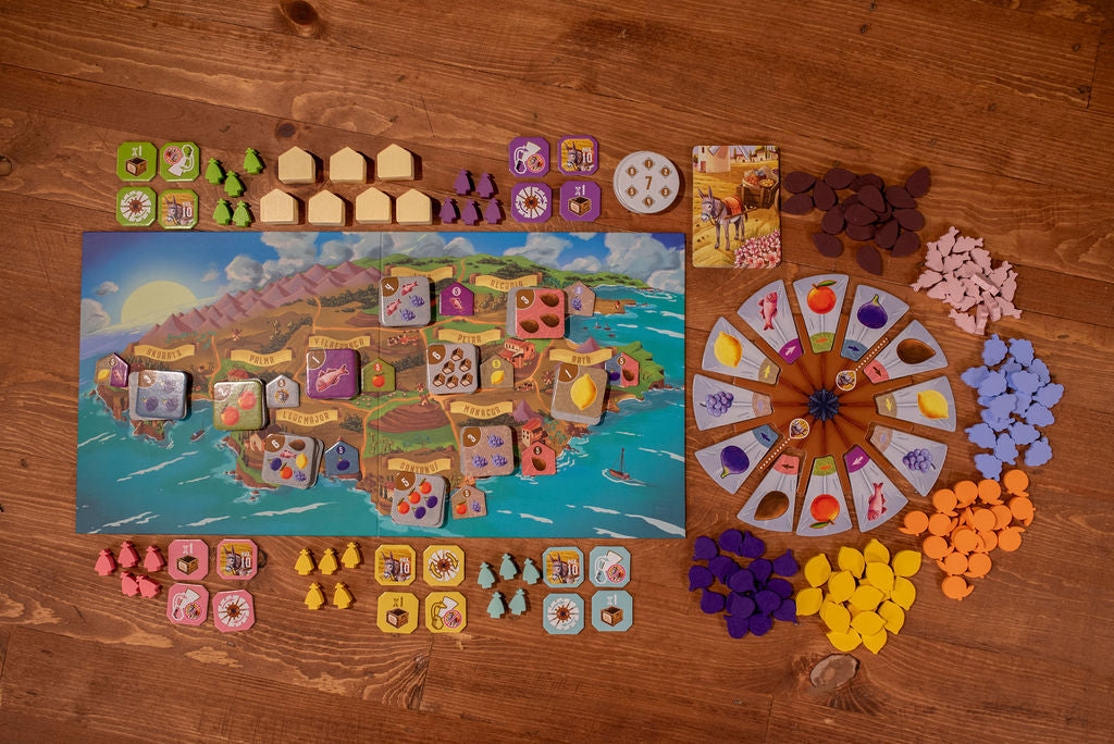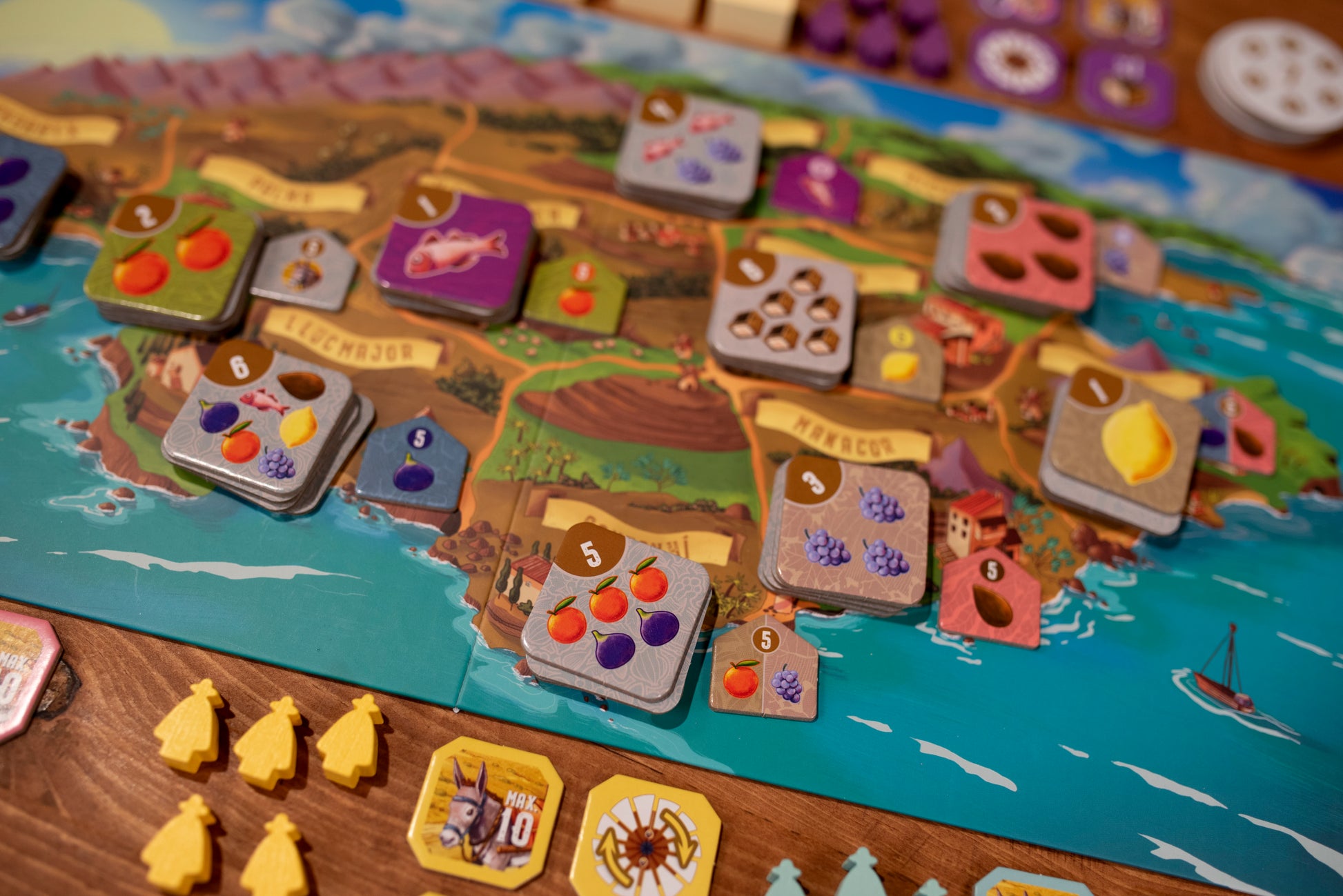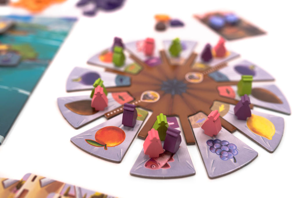 A place of golden beaches and a light-blue sea. The almond harvest is at hand, in addition, juicy oranges, lemons, and figs are ready to be picked and taken to the market. Gather as many of Mallorca's resources as possible and deliver them to the island's communities. Their requests are constantly changing, so be sure to get your donkey carts ready to deliver! Resources are collected using a mancala-like mechanic and a clever system is implemented that discourages players from hoarding.