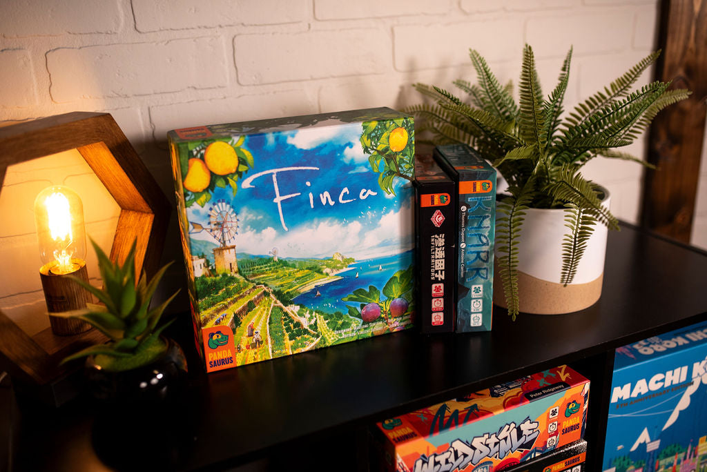 Like many Pandasaurus games my family has purchased Finca is light but can be very strategic depending on the players. I get resources and I deliver resources: simple right? The parts where it gets deeper and strategic is how you manage those actions. In your timing of drop offs you have to be aware of the piles and what other people are delivering as when a pile runs out a bonus is paid to the majority holder. How you manage your worker movement doesn’t just impact your donkey card collection which is vital but also impacts the other players. I can move a guy that stops someone else from being able to get a donkey card giving me an extra turn to make a delivery happen they could’ve gotten. Great player interaction and depth for its simplicity. The mancala like movement of the workers is very satisfying. Finca is a keeper in our collection.
