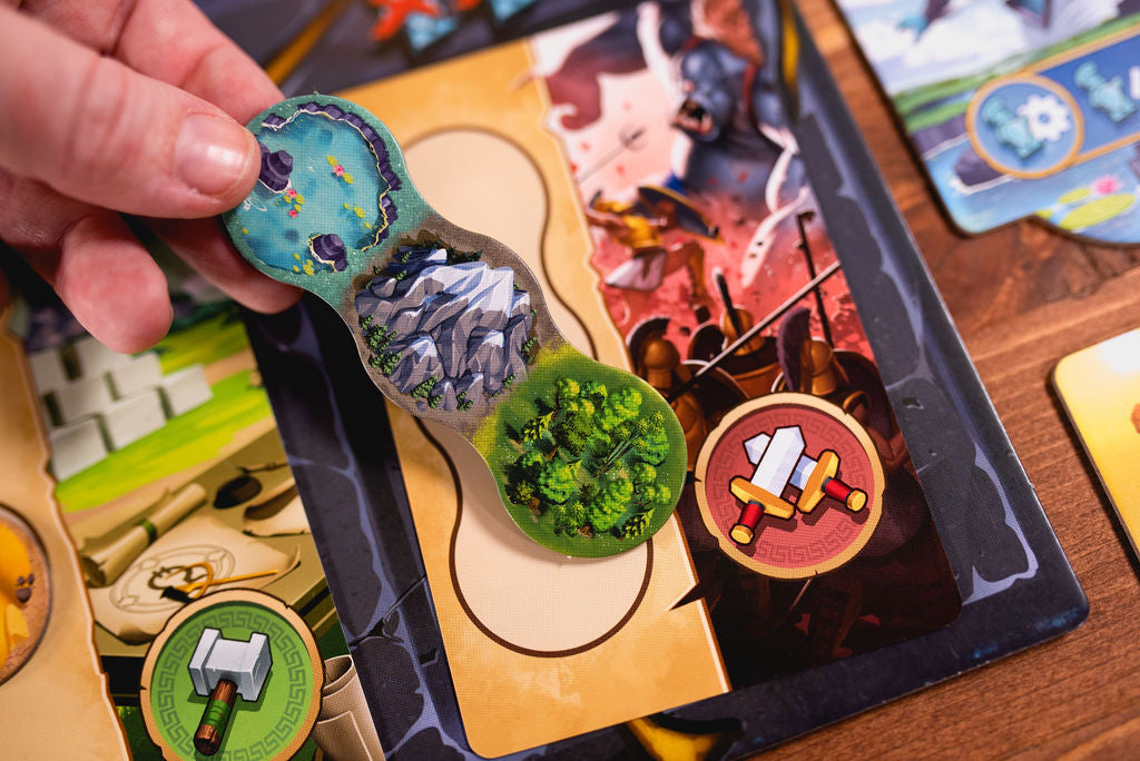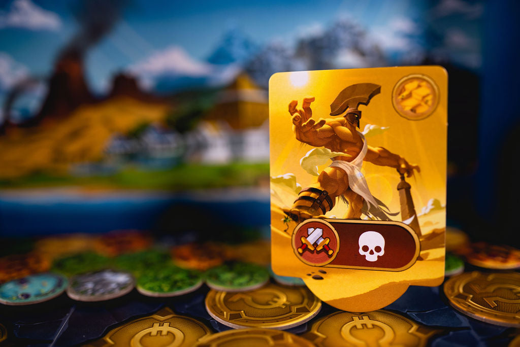 Orichalcum is a race against your opponents. Whoever is the first to collect 5 Victory Points above their board and eliminate all Creatures on their island will be the winner! There are three ways to earn victory points: draw the attention of Titans, erect Temples, and forge previous Orichalque medallions -- that legendary metal that only the Atlantes know how to extract.