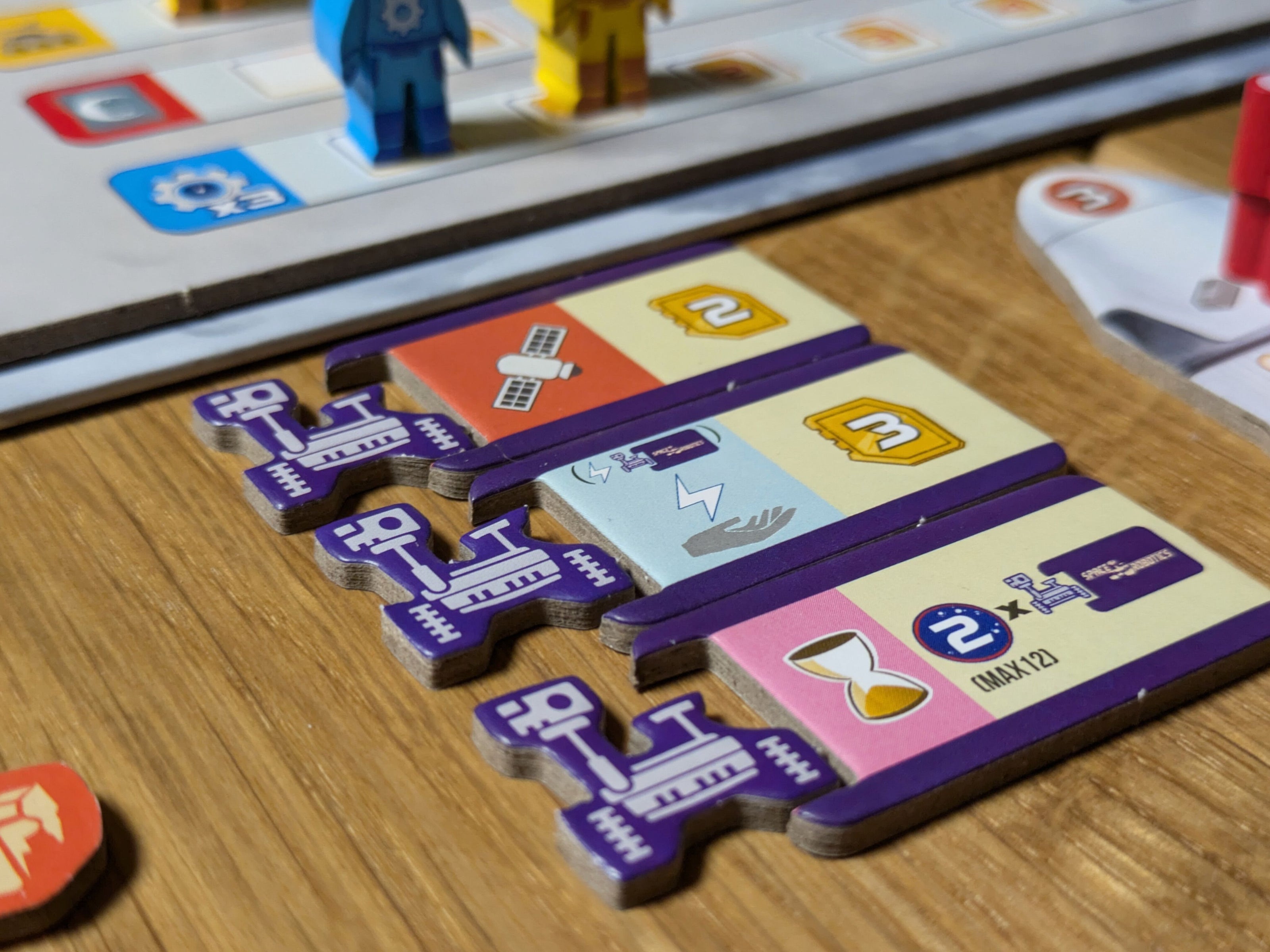 Thick cardboard, recessed player boards, screen printed meeples, and more!