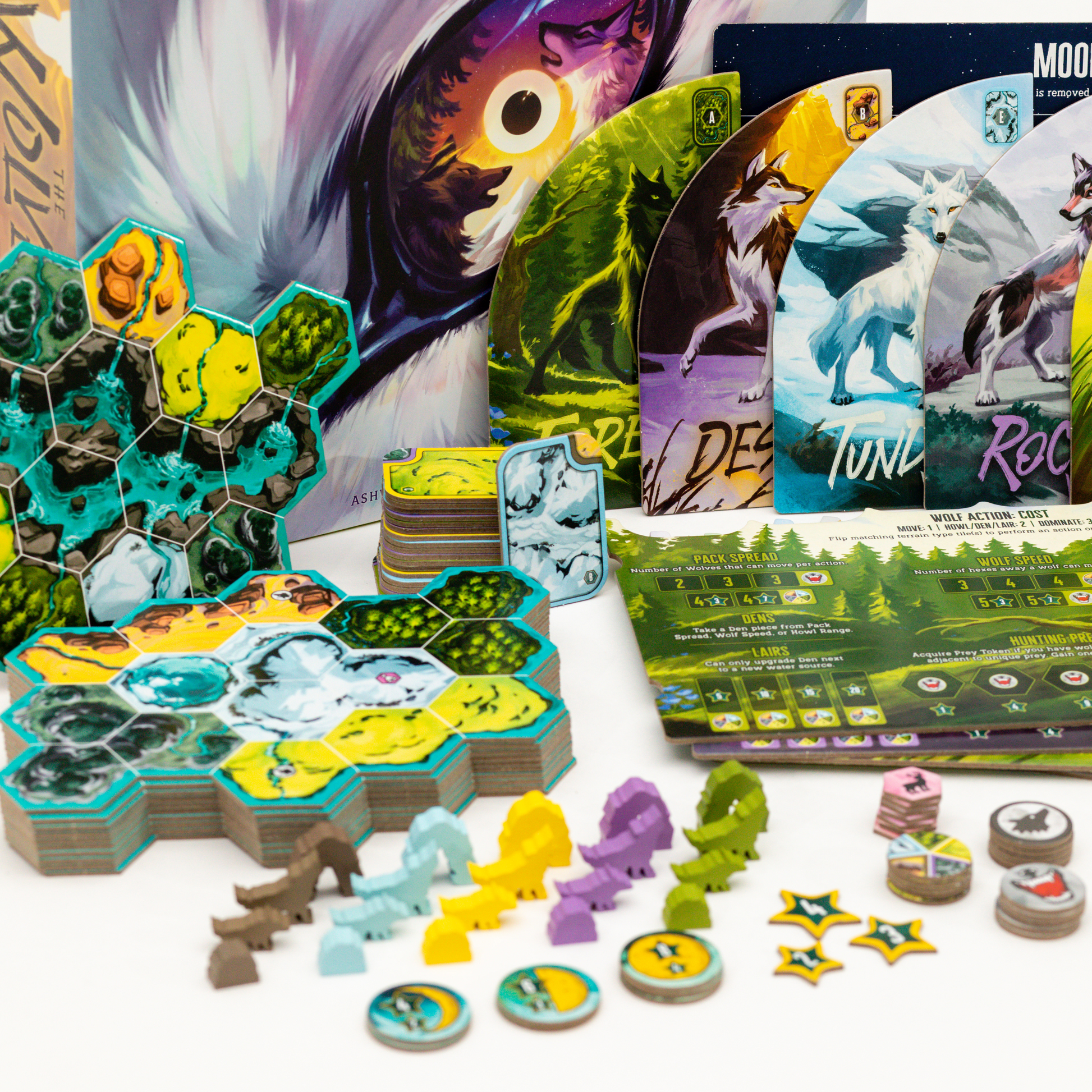 The Wolves is a pack-building strategy game for 2-5 players. It’s survival of the fittest as you compete to build the largest, most dominant pack by claiming territory, recruiting lone wolves, and hunting prey. But be careful not to expand too recklessly into terrain where your rivals thrive– they may lure members of your pack away!